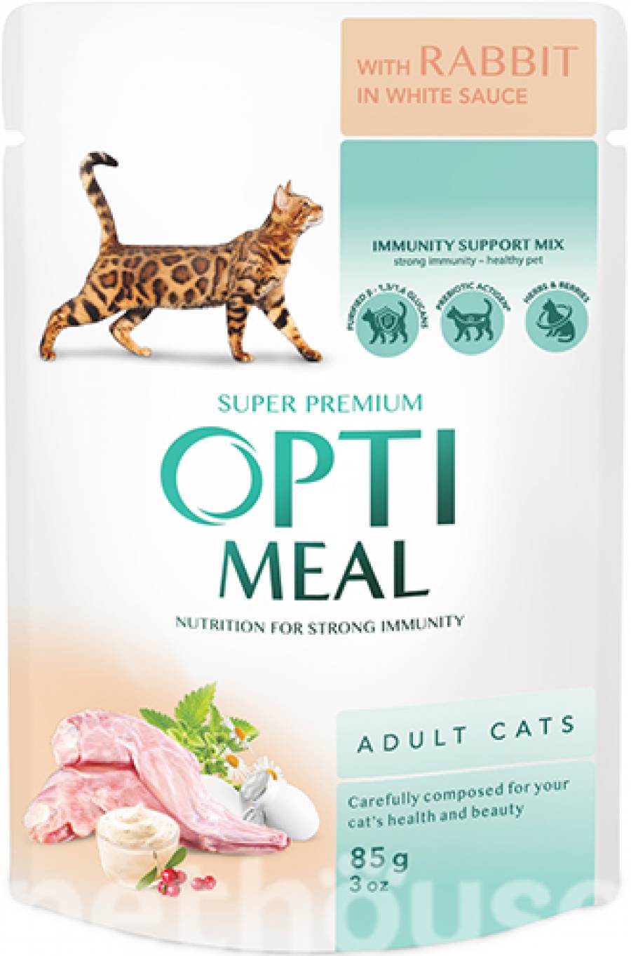 Optimeal Кусочки с кроликом в белом соусе для кошек 85г
