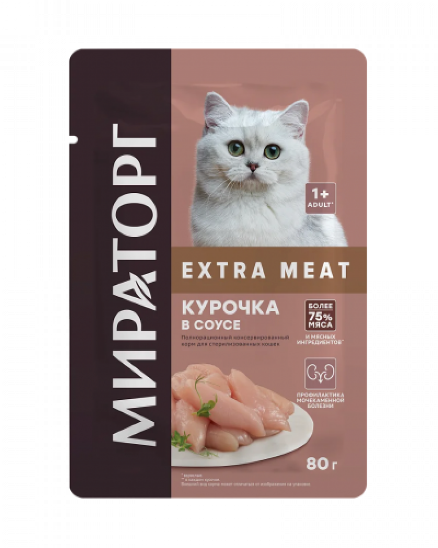 Мираторг влажный корм для кошек курочка в соусе 80г