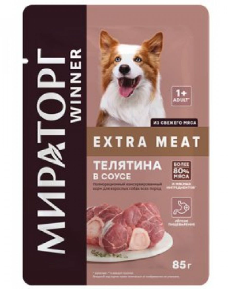 Мясо и субпродукты (в том числе телятина не менее 30%), растительные белки, рис, подсолнечное масло, витамины (A, D3, E, группы B), минеральные вещества (цинк, железо, марганец, йод), таурин, инулин, натуральный мясной соус, вода.
