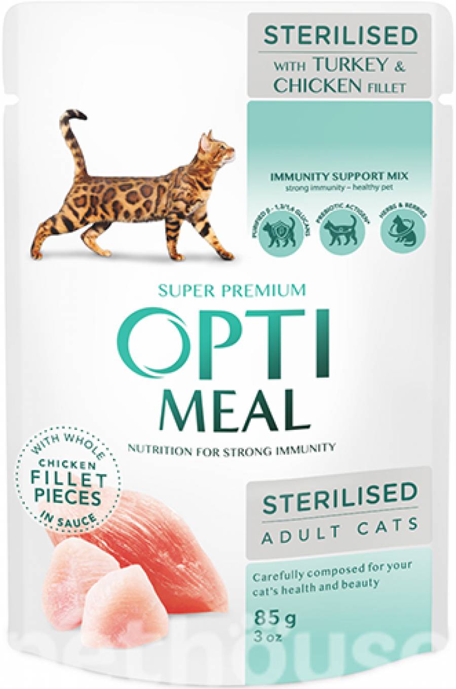 Optimeal Кусочки с индейкой и куриным филе для стерилизованных кошек 85г