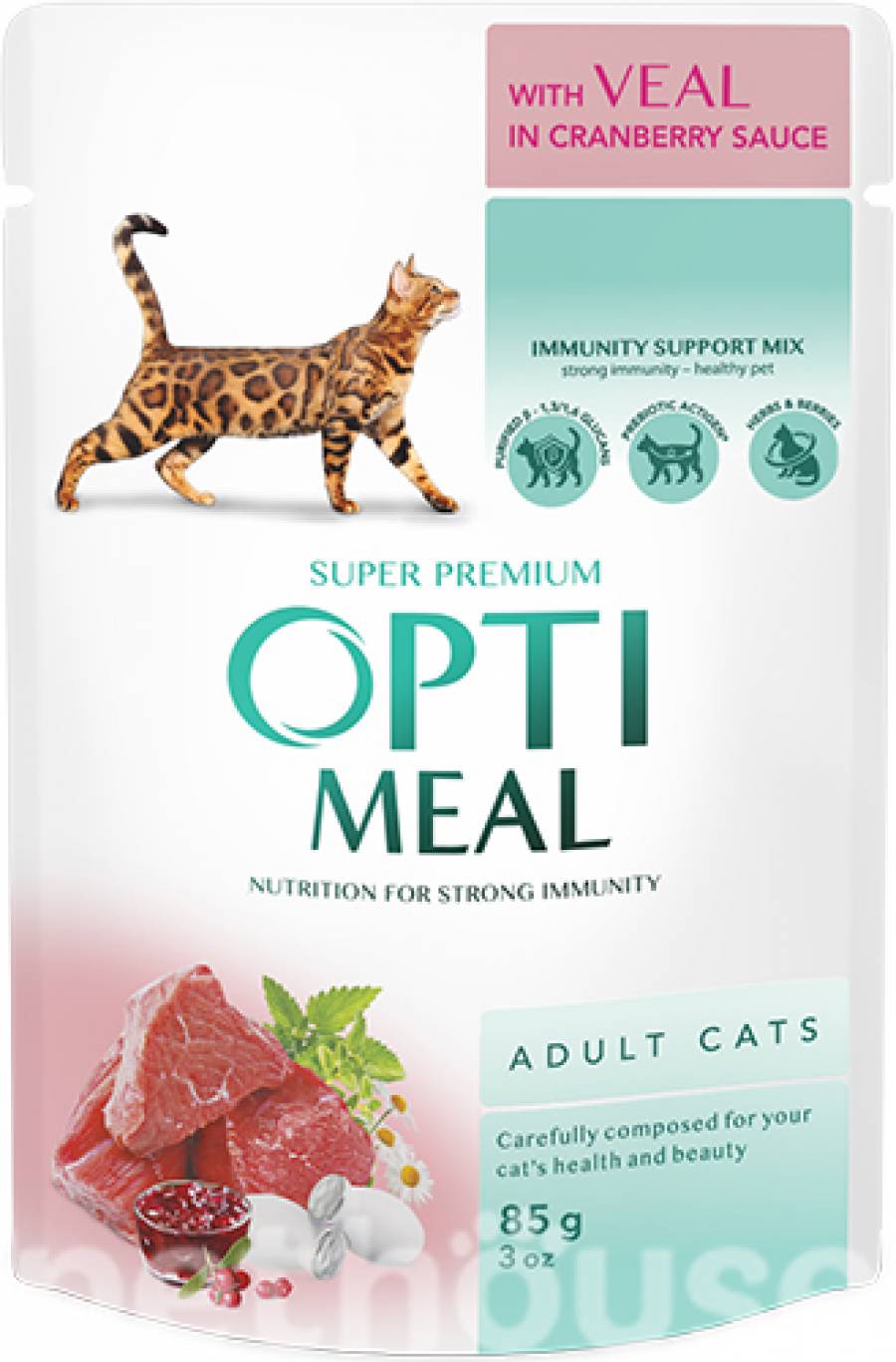 Optimeal Кусочки с телятиной в клюквенном соусе для кошек 85г